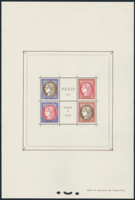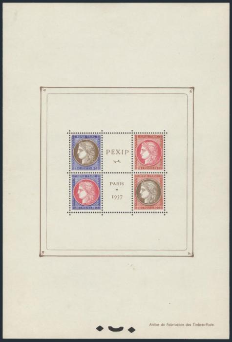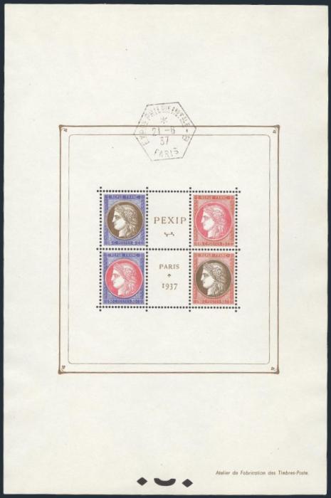 1937 souvenir sheet with neat hexagonal Exhibition cancel 21 June 1937. VF (Image)