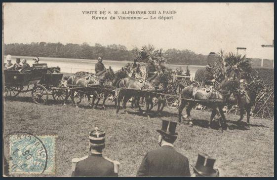 on 3 diff b/w postcards depicting ROYAL VISITS. Two are cancelled in 1903 & show the Oct 1903 Visit of the KING OF ITALY; the other from 1905 shows the Visit of KING ALPHONSO of Spain. F-VF (3) (Image)
