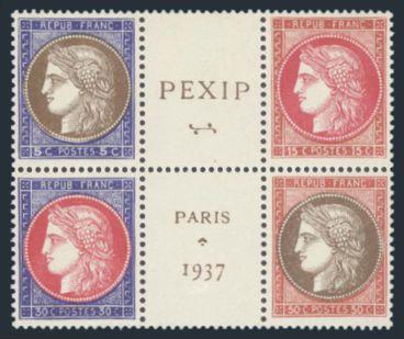 PEXIP centre block of 4 diff stamps, pristine fresh, VF, 3 stamps are NH (Image)
