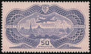 50 Fr. Airmail. Fresh colour, perfectly centred. VF, NH, some slight gum toning (Image)