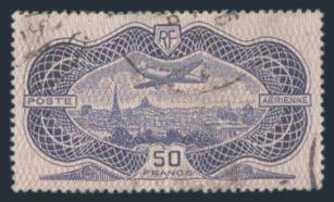 50Fr. Banknote Airmail. Lovely centering, VF, lightly cancelled (Image)