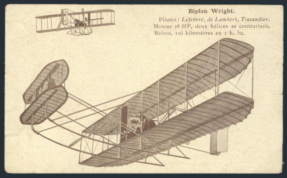 postcard 1910 depicting a drawing of the WRIGHT BROTHERS BIPLANE. Has message on reverse but not mailed. Addr to Algeria. F, couple tiny edge tears (Image)