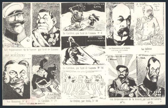 satirical postcard circa 1905 for the RUSSO-JAPANESE WAR. Has multiple caricatures / scenes related to the war. VF. Unusual item (Image)