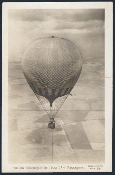 real photo postcard circa 1910 depicting a hot air SPHERIQUE BALLOON in flight. VF (Image)