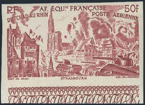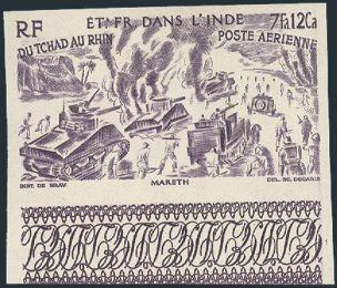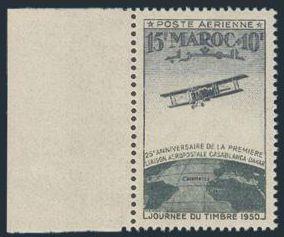 2214 CB35 imageCB35, Scarce 15Fr & 10Fr Airmail Semi-Postal margin single. Has RED COLOUR OMITTED error. VF, NH (Yvert #PA74a, Cat 435 Euro) (Image) Estimate 250.00+ $Cdn