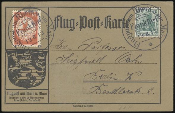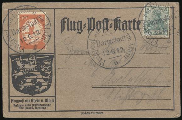 Tied on Rhine-Main cach Flight card from Darmstadt 12 June 1912; addr domestically. F, CL1 has small flaw (Image)
