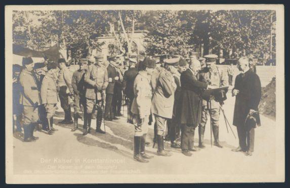 b/w postcard depicting KAISER WILHELM meeting Turkish Officials in Constantinople 1917. The visit was between two Wartime Allies. VF (Image)