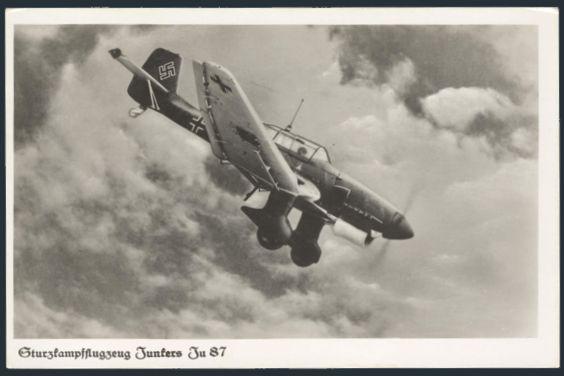 of 4 diff WWII b/w postcards depicting GERMAN LUFTWAFFE AIRPLANES. Incl Stuka Dive Bomber, Heinkel Bomber, Training Planes, etc. One is used 1939, others unused. VF