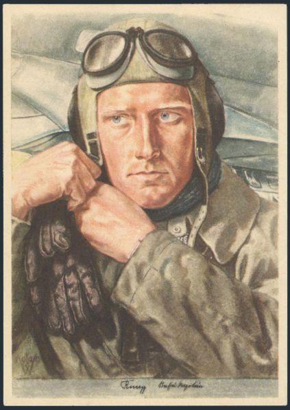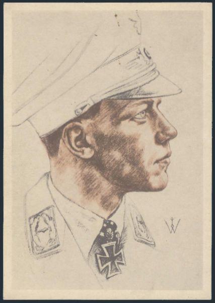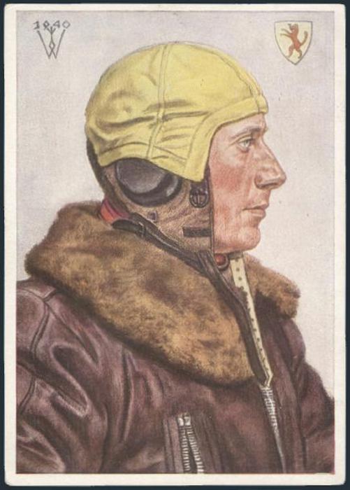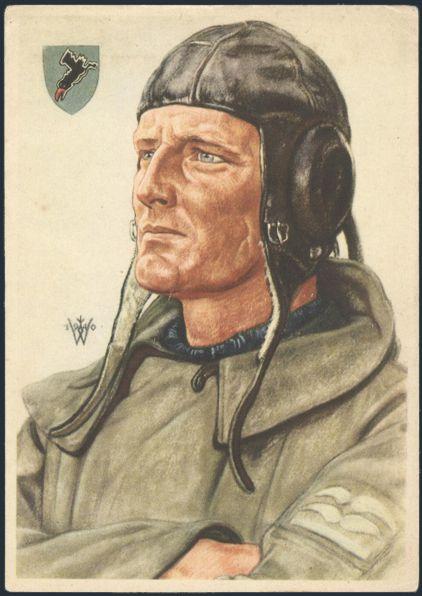 Willrich WWII propaganda VDA postcard circa 1940 depicting Luftwaffe pilot MAJOR HELMUT WICK - recipient of the Knight's Cross. He destroyed 56 enemy aircrafts & was shot down by the British in 1940. VF (Image)