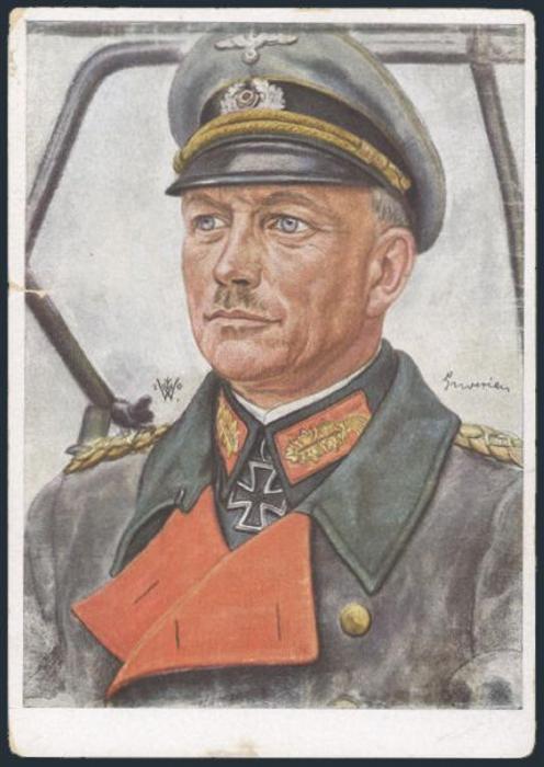 Willrich postcard circa 1941 depicting famous WWII German Panzer General HEINZ GUDERIAN. He played a central role in the development of the Panzer "Blitzkrieg" approach during the War. F, small edge tear (Image)