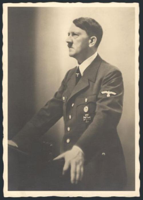 2463   imageUnused b/w photo postcard with a portrait of ADOLF HITLER (by Hoffmann). VF (Image) Estimate 60.00+ $Cdn