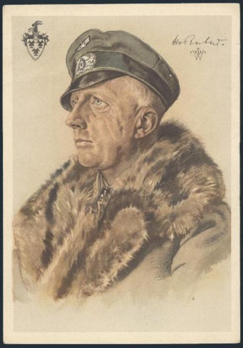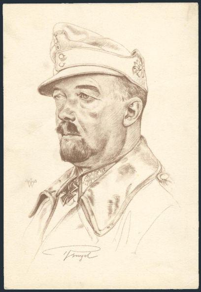 2454   imageUnused Willrich WWII Propaganda postcard circa 1942 depicting portrait of Austrian General JULIUS RINGEL. He fought on the Eastern & Western fronts & was a recipient of the Knight's Cross. F (Image) Estimate 50.00+ $Cdn