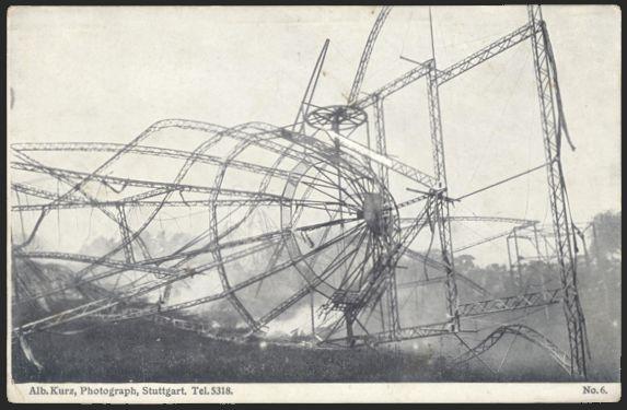 postcard from 1920's depicting a BURNED WRECK OF A ZEPPELIN airship. F (Image)