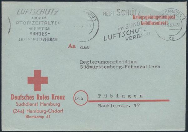 special printed German Red Cross mail envelopes for Nazi War Prisoners. One is used in 1960, other unused. Only a handful of Nazis still in prison in 1960. VF