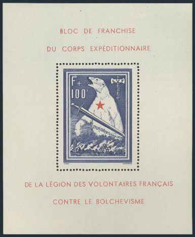 Legion Polar Bear Local souvenir sheet. VF, NH, light selvedge crease (Mi# Block 1, Cat 800 Euro) (Image)