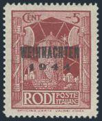 Italy/Aegean Islands/RHODES #55 with "WEIHNACHTEN/1944" Type 1 overprint. VF, NH (Mi#12 I, Cat 300 Euro) (Image)