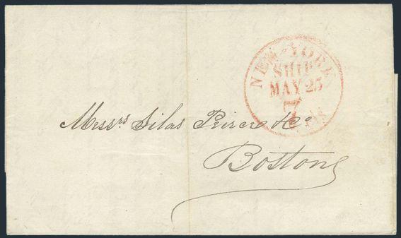 2713   imageStampless Trans-Atlantic cover datelined Gibraltar 27 Mar 1846 to Boston. Has red "NEW YORK / SHIP / 25 May / 7cts" CDS. F-VF (Image) Estimate 125.00+ $Cdn