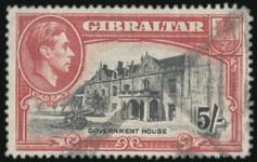 2739 115 image115, KGVI 2 Shilling perf 13 vertical pair with the top stamp having the BIRD ON MEMORIAL variety. VF, lightly cancelled, tiny facial scuff above the variety (SG #128bb, Cat £612) (Image) Estimate 300.00+ $Cdn
