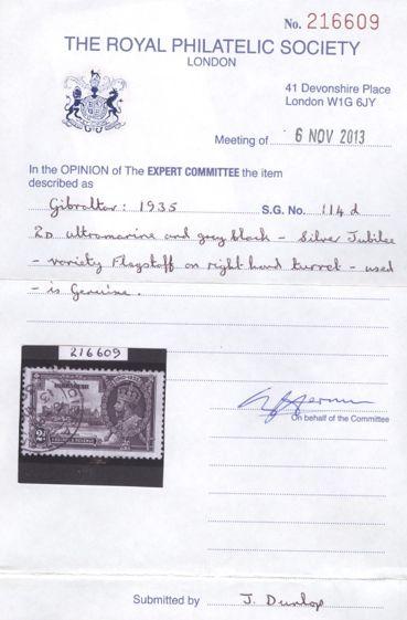 2735 100 image100, Silver Jubilee 2p with FLAGSTAFF ON RIGHT-HAND TURRET variety. F-VF. Has 2013 Royal Philatelic Society Certificate (SG #114d, Cat £500) (Image) (View Certificate)