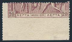 2759 189 image189, Olympic Games single from the bottom row of the sheet, ONLY PARTLY PRINTED (leaving over 50% of the stamp blank). A rare error for the Olympic collector. VF, OG. Signed by Cosmopoulos (Image) Estimate 250.00+ $Cdn