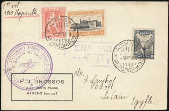 2760 327, 331 image327, 331, etc, Tied on cacheted FFC Athens to Beyrouth June 1929 with Beyrouth & Cairo b/s's. F (Image) Estimate 65.00+ $Cdn
