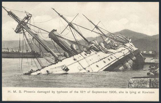2822   imageUnused b/w photo postcard depicting the WRECK OF THE SHIP HMS PHOENIX in Kowloon Harbour after the typhoon of 18 Sept 1906. VF, corner bend (Image) Estimate 75.00+ $Cdn