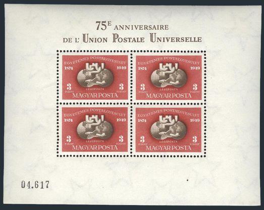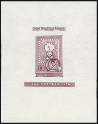 2834 C95 imageC95, The scarce imperf souvenir sheet in ROSE LILAC. Only 1,200 copies exist and one of the great rarities of modern Hungary. VF, VLH (Image) Cat 1,600.00