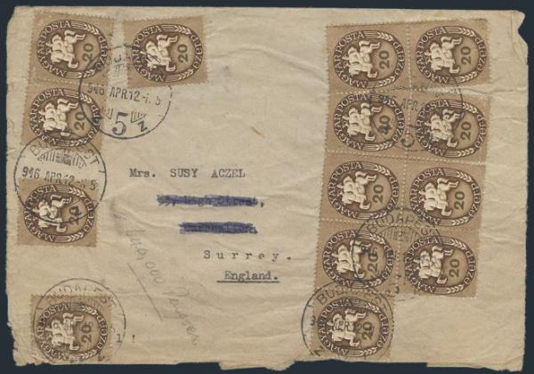2827 728 image728 (32), Tied by Budapest 12 Apr 1946 CDS's front & back on 640,000 Pengo rated Inflation cover to England. VG+, has flts but an eye-catching cover (Image) Estimate 50.00+ $Cdn