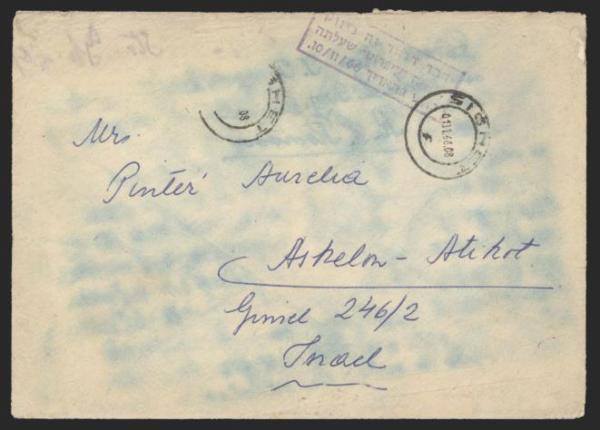 2961   imageSHIPWRECK 1966 cover water-damaged from ship "S.S. KYROS". Addr to Ashkelon, Israel. Has enclosure originating from Sighetul, Romania. Has violet boxed h/s in Hebrew "This mail was damaged on the ship Kypros that caught alight on 10 / 11 / 66". Rare, only about 10 examples recorded from this wreck. VG, stamp floated off (Image) Estimate 375.00+ $Cdn