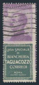 Scarce "TAGLIACOZZO" advertising issue. F, slightly toned gum (Image)