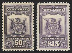 OST1a/OST17, Collection of Ont Stock Transfer & Luxury Tax Revenues. We noted OST4 NH ($40), OST8 NH ($80), OST10 NH ($50), OST15 ($50), etc. F-VF, some NH. Cat $537 (15) (Image)