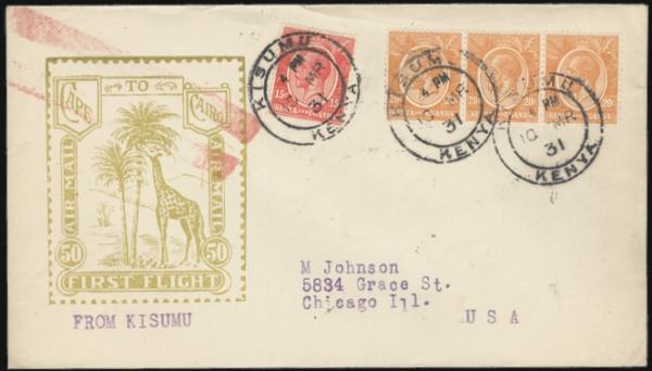3236 24, 25 image24, 25 (Strip of 3), Tied on cach Imperial Airways FFC from Kisumu to London 10 Mar 1931. F-VF (Image) Estimate 75.00+ $Cdn