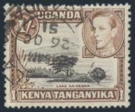 3241 80 image80, KGVI One Shilling pictorial with the "MOUNTAIN RETOUCH" variety. VF, neat 26 Oct, 1951 dated cancel, a few short perfs (SG #145ad, Cat £700) (Image) Estimate 300.00+ $Cdn