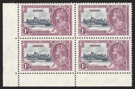 3405 184-7 image184-7, KGV Silver Jubilee matched set of LL corner margin blocks. The top left stamp in each block has the EXTRA FLAGSTAFF variety. All with selected centering, VF, LH. A BEAUTIFUL FRESH SET (SG #210a-13a, Cat £835) (Image) Estimate 600.00+ $Cdn