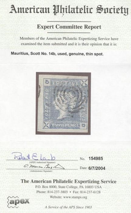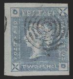 3425 14B image14B, Scarce QV 2p blue on bluish paper with neat target cancel. Jumbo example. F-VF, tiny thin spot. Has 2004 APS Certificate (Image) (View Certificate)