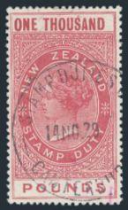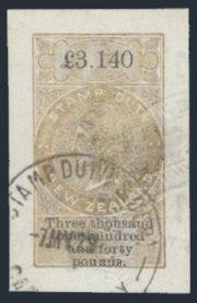 imperforate Ultra High Value £3,140 Revenue with large "boardwalk" margins. Has neat Canterbury 7 May, 1929 CDS & light embossed cancels. XF (Kiwi #R442, Cat $800)