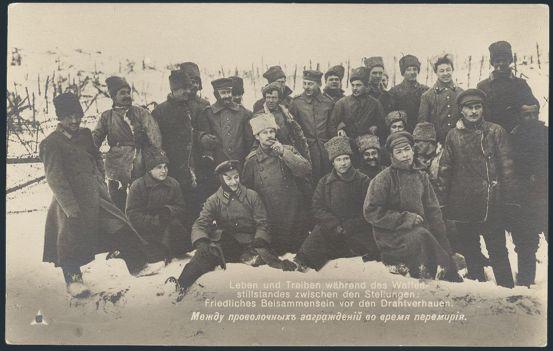 4023   imageUnused b/w real photo postcard following the Dec 1917 Armistice between Russia and Germany. Shows troops from both sides together. VF. Scarce (Image) Estimate 65.00+ $Cdn