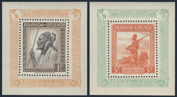 4005 72/83 image72/83, Scarce set of 4 diff miniature sheets up to the 5Fr, all with 1949 UPU Tribute imprints in the margins. Fresh, VF, NH (Image) Estimate 750.00+ $Cdn