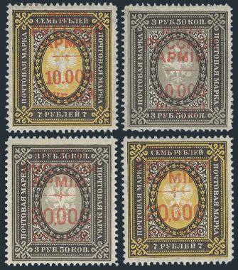 4024 232-5 image232-5, Complete General Wrangel set of 4 diff surcharges. Fresh, F-VF, LH, guarantee b/s's. Scarce set (Image) Cat 1,000.00