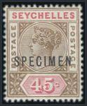 4175 3/15 image3/15, Four diff QV issues up to 45¢ with 'SPECIMEN' overprints. This is the complete 1893 Gibbons listed set (SG #'s 22s-5s, Cat £100). F-VF (Image) Estimate 70.00+ $Cdn