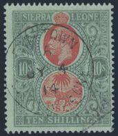4188 118 image118, KGV Ten Shilling, neat Freetown 4 Jy, 1914 CDS. F (Image) Cat 160.00+