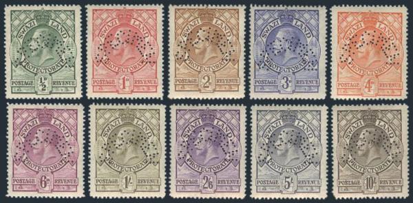 4331 11-20 image11-20, Complete KGV set to 10 Shilling, all perforated "SPECIMEN". Nicely centered, rich colours, F-VF (SG Cat £350) (Image) Estimate 250.00+ $Cdn