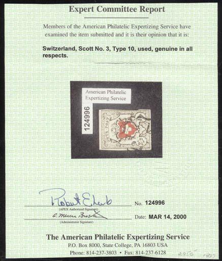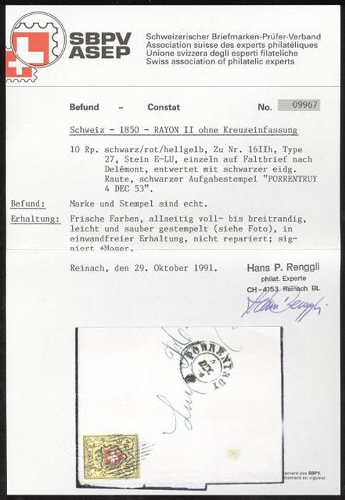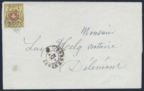 4369 8 image8, Tied by diamond grid cancel on folded entire with Porrentruy 4 Dec 1853 CDS. Addr to Delemont (same day b/s). F-VF. Has 1991 Renggli Certificate (Image) (View Certificate)