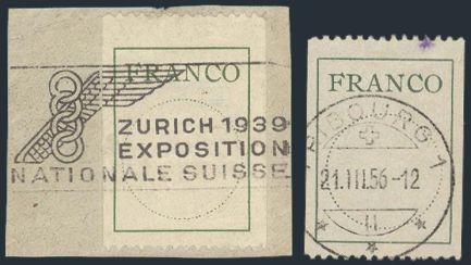 4437   image"FR. Francozettel" issues from 1911-52 incl Type 1 mint & used & used Types 2-4. F-VF (5 diff) (Image) Estimate 50.00+ $Cdn