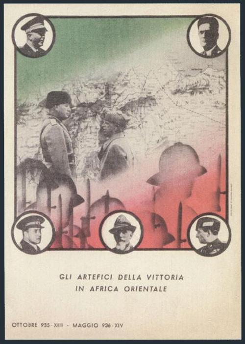 4544   imageUnused circa 1930's colour illustrated Italian Propaganda postcard after Italian Victory in North Africa depicting Standard of Roman General Scipio Africanus, Map of North Africa & ancient ship with sail in Italian colours. VF (Image) Estimate 80.00+ $Cdn