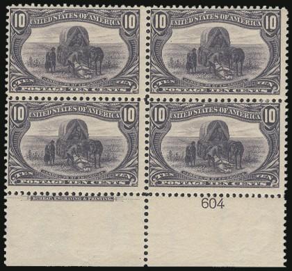 and attractive bottom margin block with PLATE IMPRINT & PLATE NUMBER 604. F, left stamps are NH, right stamps VLH (Image)