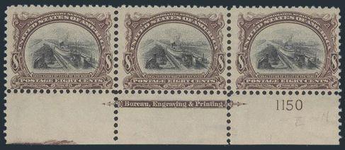 horiz strip of 3 with PLATE 1150 IMPRINT. F-VF, 2 stamps are NH, other is VLH (Image)