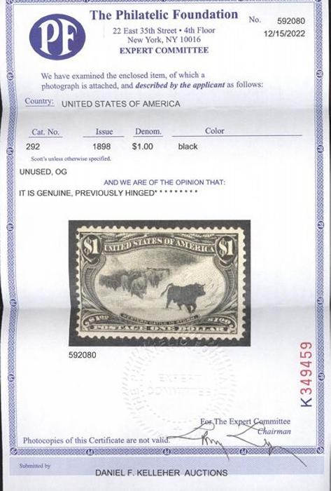 mint Two Dollar Trans-Mississippi. F-VF, OG, faint horizontal crease, corner crease at bottom right. Has 1981 Philatelic Foundation Certificate (Image) (View Certificate)