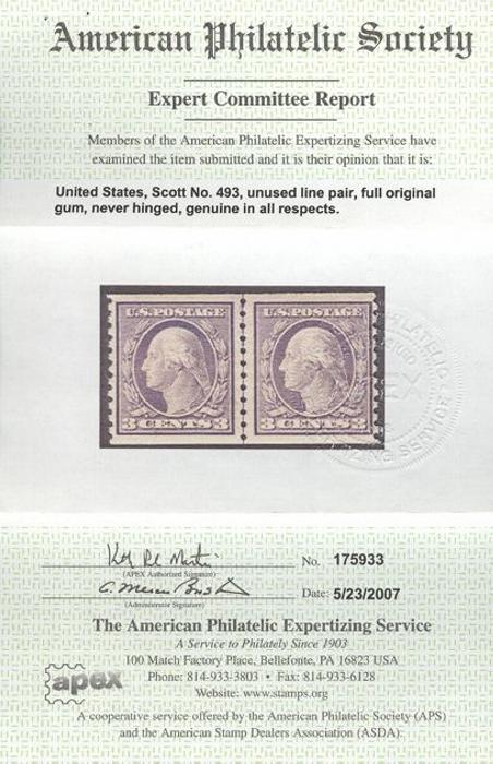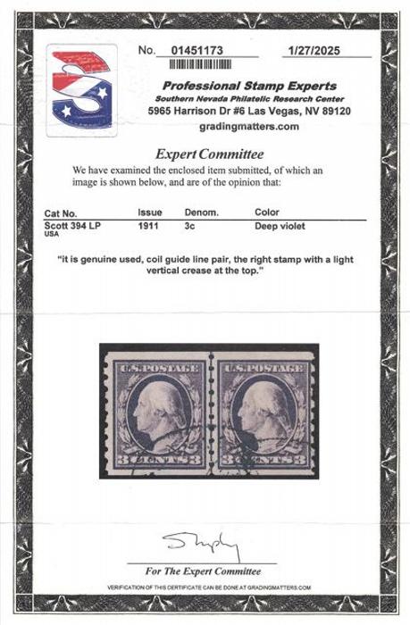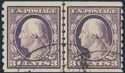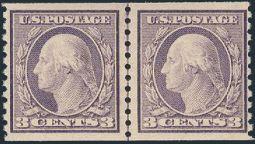 Attractive coil joint line pair of 3¢ violet Washington, VF, NH. Has 2007 APS Certificate (Image) (View Certificate)