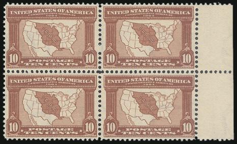Beautifully centred marginal block of the 10¢ Louisiana. Fresh crisp colour and pristine gum. A CHOICE BLOCK. XF, NH (Image)